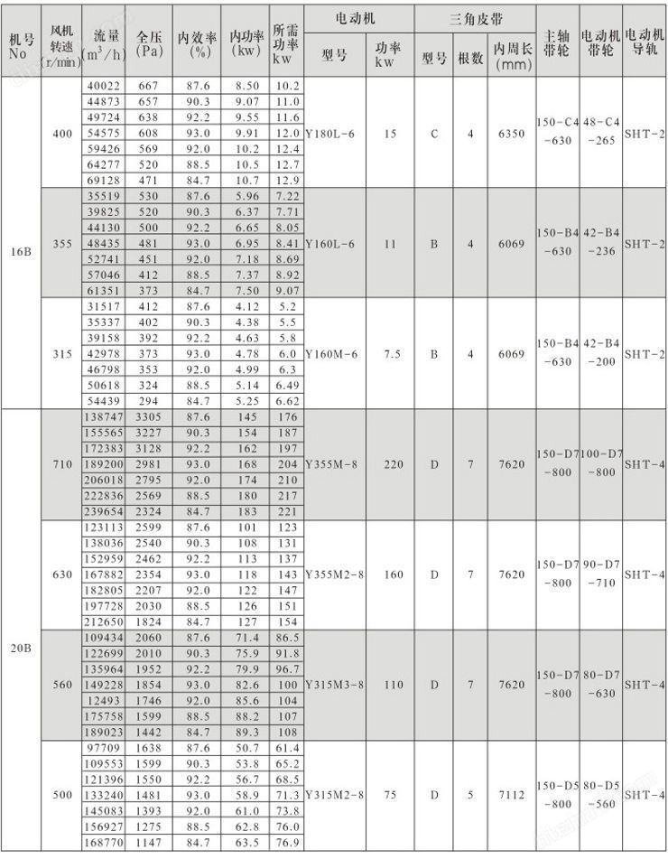 4-68型離心通風(fēng)機(jī)性能參數(shù)與選用配置表(6)