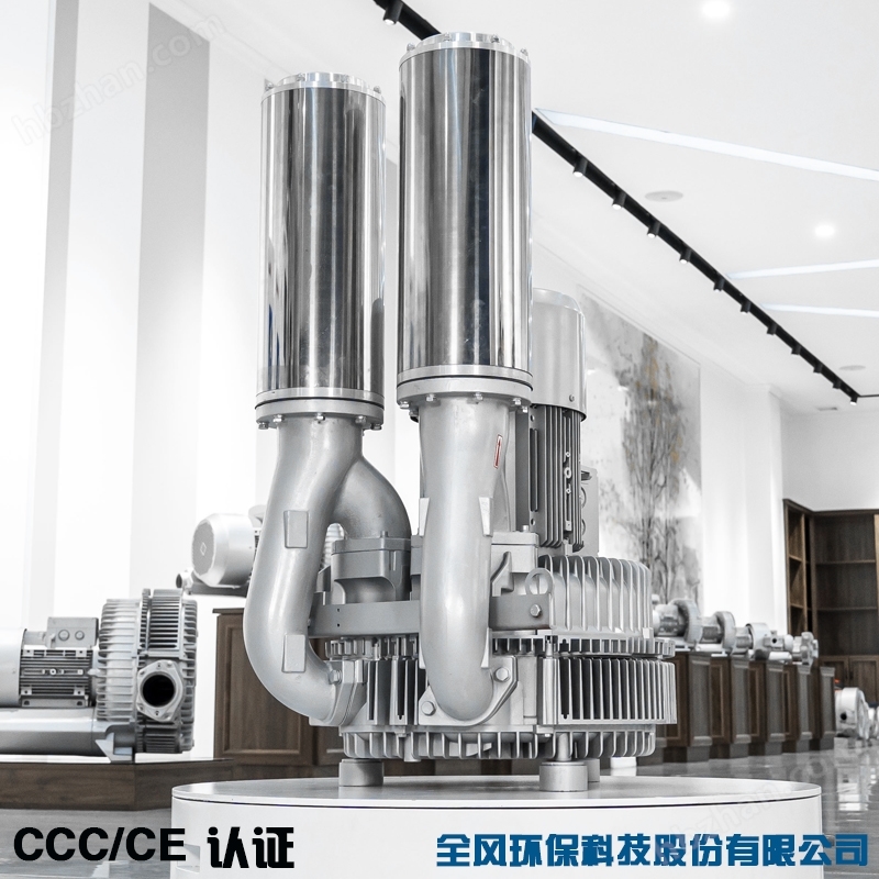 立式雙葉輪高壓漩渦鼓風機的葉輪由數(shù)十片葉片組成,它類似龐大的氣輪機的葉輪。葉輪葉片中間的空氣受到了離心力的作用,向葉輪的邊緣運動,在那里空氣進入泵體環(huán)行空腔,重新從葉片的起點以同樣的方式再進行循環(huán)。風機采用電機,結構緊湊,體積小,重量輕,噪音低,送出氣源無水無油。